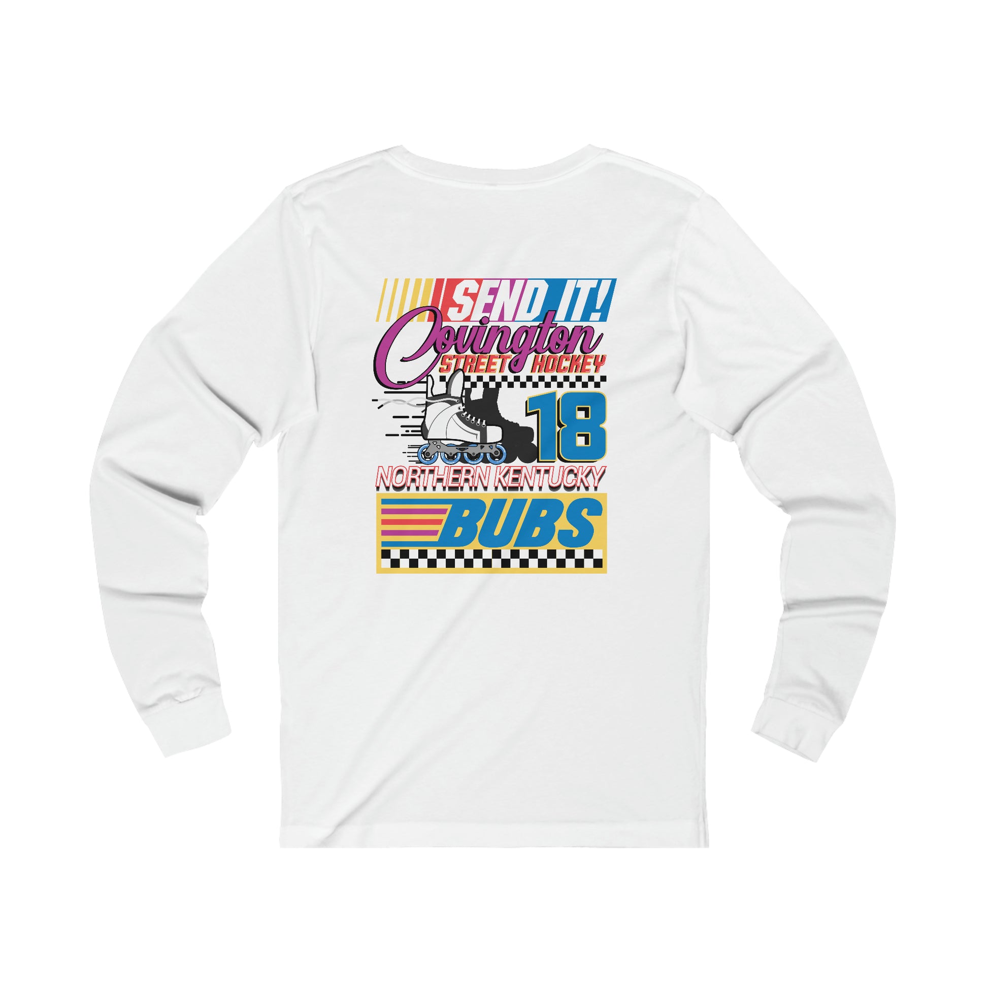 This classic unisex long sleeve tee with the SEND IT! design by Sunil "The Professor" Ketty (IG: @sunil_ketty_concepts) is a beaut! Casually elegant with an excellent quality print, it is an irreplaceable everyday item for anyone.